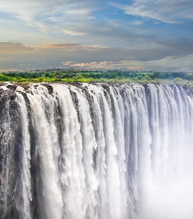 Victoria Falls, one of the most spectacular natural wonders in the world, is located on the border between Zimbabwe and Zambia and known locally as "Mosi-oa-Tunya," meaning "The Smoke That Thunders," the falls stretch over a mile wide and plunge more than 350 feet into the Zambezi River gorge below. This breathtaking display of cascading water creates a stunning spectacle, especially during the rainy season when the river swells and sends massive plumes of mist into the air. The surrounding rainforest thrives due to the constant humidity, making it a haven for diverse wildlife and lush vegetation. Adventurous visitors flock to Victoria Falls for activities like bungee jumping, white-water rafting, and scenic helicopter flights, all while taking in the awe-inspiring beauty of the falls. Whether viewed from the air or the ground, Victoria Falls is a breathtaking destination that captivates the hearts of all who witness its majestic power.