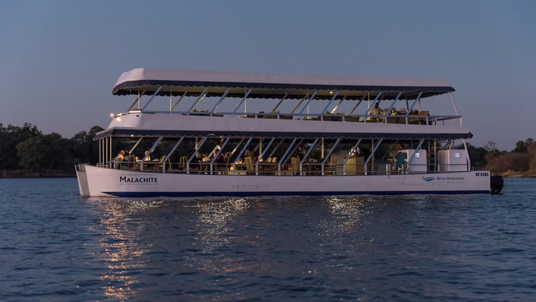 With breathtaking vistas and fine dining, a dinner cruise in Victoria Falls provides a spectacular experience. Along with local cuisine, fresh ingredients, and exquisite wines, the cruise offers visitors the chance to see wildlife such as hippos and elephants. The atmosphere is improved with live entertainment, such as traditional dances and music. Through this exclusive dining experience, guests may unwind and indulge while taking in the splendor of one of the natural wonders of the world. It's the perfect way to enjoy the beauty of Victoria Falls and a great opportunity to commemorate special occasions or make lifelong memories.